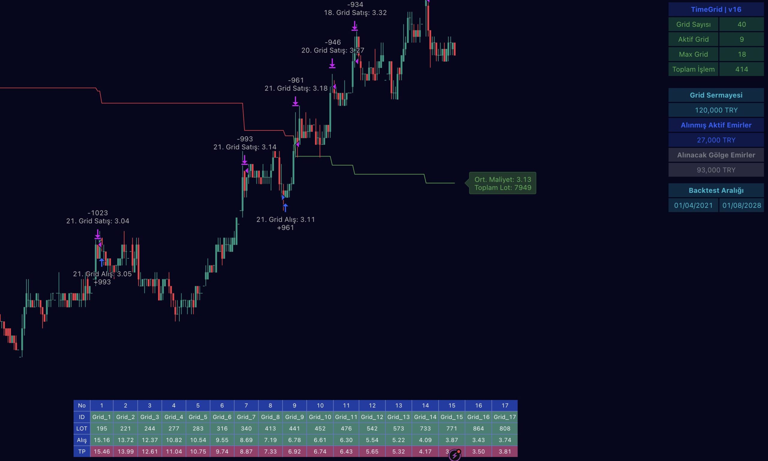 GridMaksimum grid sayısını belirler. Strateji bu sayı kadar kademeli alım yapabilir.