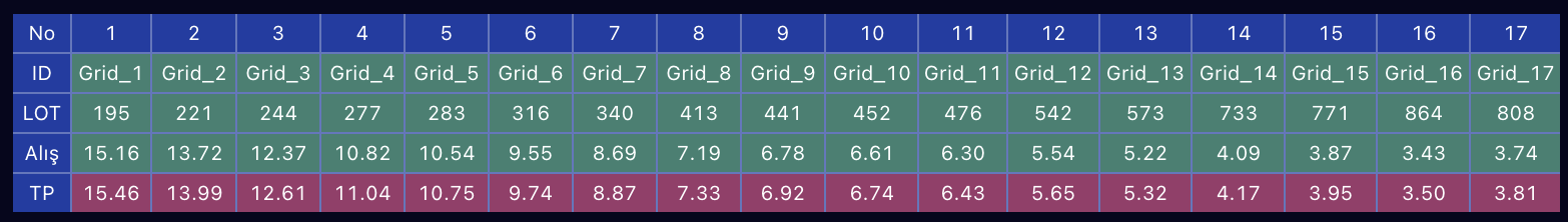 Grid Sayısı Stratejinin kaç grid ile çalışacağının bilgisidir.